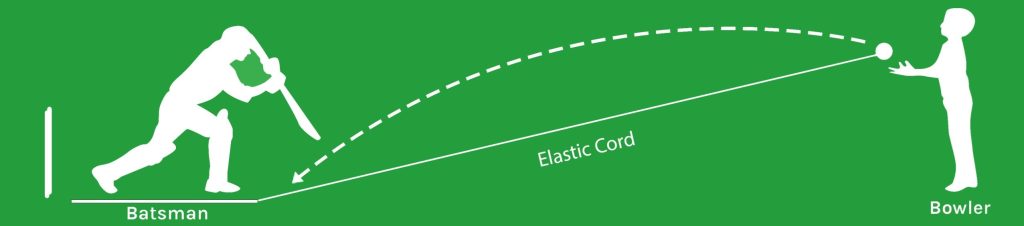 A bowler walks away from the Mat stretching the CORD. The longer the stretch, the greater the Ball speed (WARNING! Do not pitch a very fast Ball, as this could impact negatively on a Batsman’s confidence and possibly hurt them if the Ball hits them.)